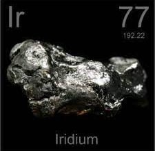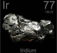 Iridium is a chemical element; it has symbol Ir and atomic number 77. A very hard, brittle, silvery-white transition metal of the platinum group, it is considered the second-densest naturally occurring metal (after osmium) with a density of 22.56 g/cm3 (0.815 lb/cu in)[7] as defined by experimental X-ray crystallography.[a] It is one of the most corrosion-resistant metals, even at temperatures as high as 2,000 °C (3,630 °F). However, corrosion-resistance is not quantifiable in absolute terms: although only certain molten salts and halogens are corrosive to solid iridium, finely divided iridium dust is much more reactive and can be flammable, whereas gold dust is not flammable but can be attacked by substances that iridium resists, such as aqua regia.